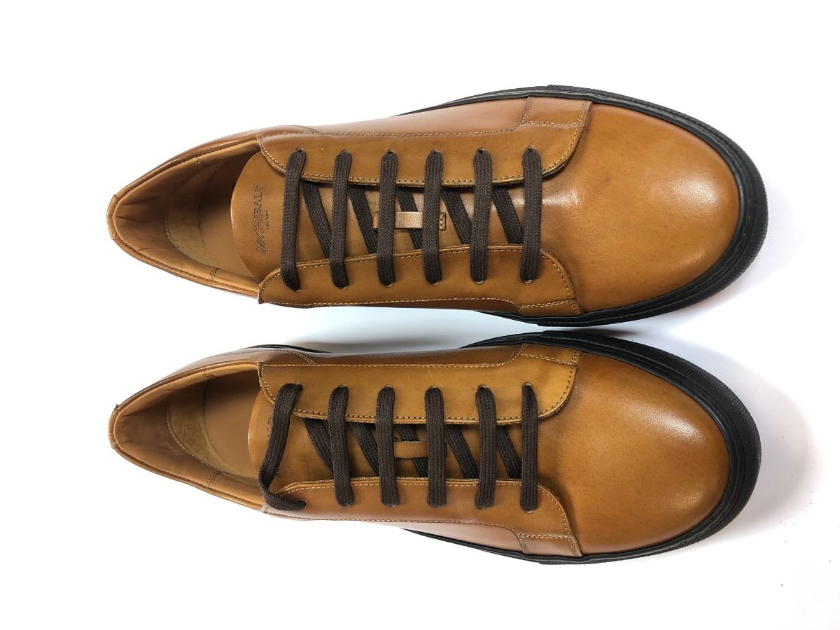 The fifth release of our Ghirlandina Low-Top Leather Sneakers features slightly less padding, a wider laces-jacket and a slicker, cleaner look with less (and smaller) visible branding. Ideated on a blistering summer night in Modena, it was only fitting to name our sneaker after the beautiful Torre della Ghirlandina. Hand stitched in Mirandola, Italy using an incredibly soft yet durable Italian calfskin, this minimalist pair stays true to our design philosophy and is simple, classic and timeless. This beautiful special edition of our Ghirlandina involves a special process where the leather is hand stained to create a finish known as 'anticato'. Each pair requires an extra 105 mins (1 hr 45 mins) of meticulous coloring to produce this effect to the patina. Hand stitched in Mirandola, Italy using an incredibly soft yet durable Italian calfskin, this minimalist pair stays true to our design philosophy and is simple, classic and timeless. As this style is no longer part of our core collection, the remaining units have been relocated to our Discontinued, Samples, and One-Offs offering. In the event there is a discrepancy in the version cited for this product, we will refund any difference that would be owed. • Handmade in Modena, Italy • Construction: Hand cut and stitched. • Italian Calfskin with 'Anticato Treatment', a 1hr 45 mins hand-staining treatment to the leather. • Calfskin inner lining • Last: Ghirlandina • Unisex • Use horsehair brush to remove any dust • Polish in small circles with a cotton cloth to restore a soft shine • High-grade durable rubber white soles, made in Italy